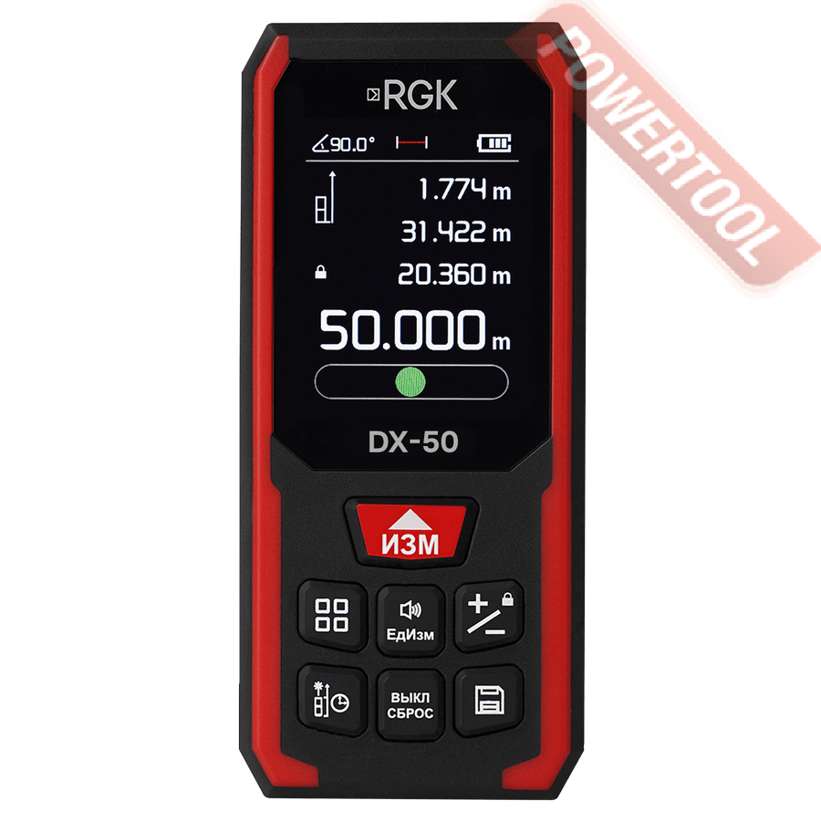- 1. Дальномер лазерный с рулеткой 5 метров RGK RD 41.