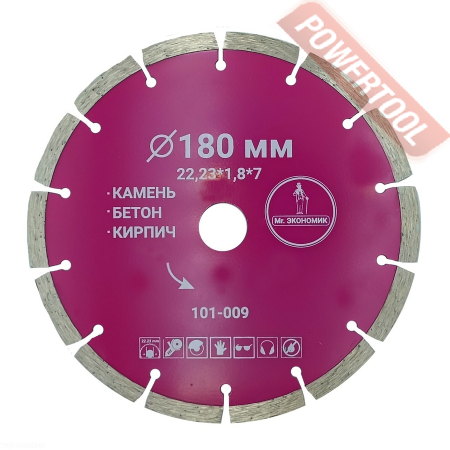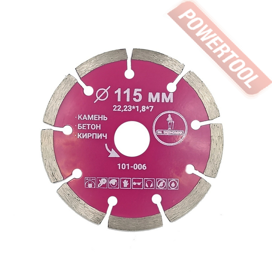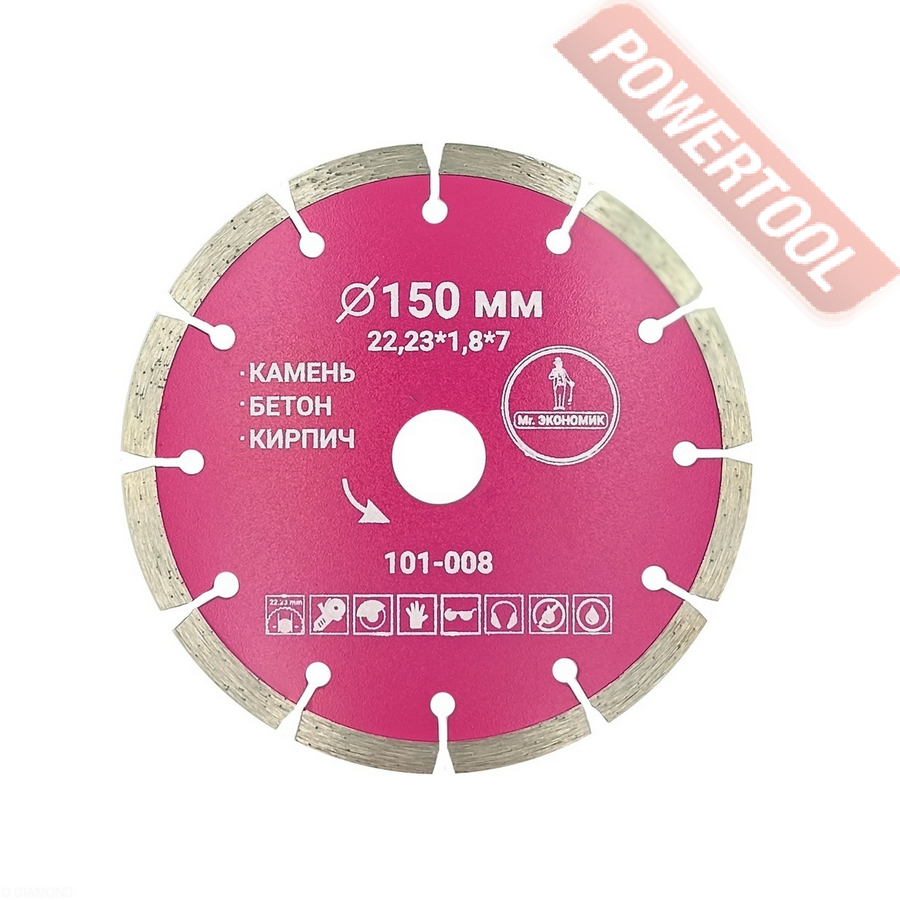 Диск алмазный сегментный по бетону, диаметр 230 мм, посадочное отверстие 22,23 мм, размер ШхВхД сегмента 2,6х12х40 мм, количество сегментов 16, лазерная сварка, сухой и мокрый рез, оптимально режет железобетон, старый бетон, промывной бетон, бетонные изделия, бордюрный камень, дорожный бетон, керамические трубы, гончарные материалы, глиняный кирпич, керамогранит, натуральный и искусственный камень, голландская черепица, шифер, стеклопластик, гипсокартон. Диск с высокой скоростью резки и максимальной стойкостью.