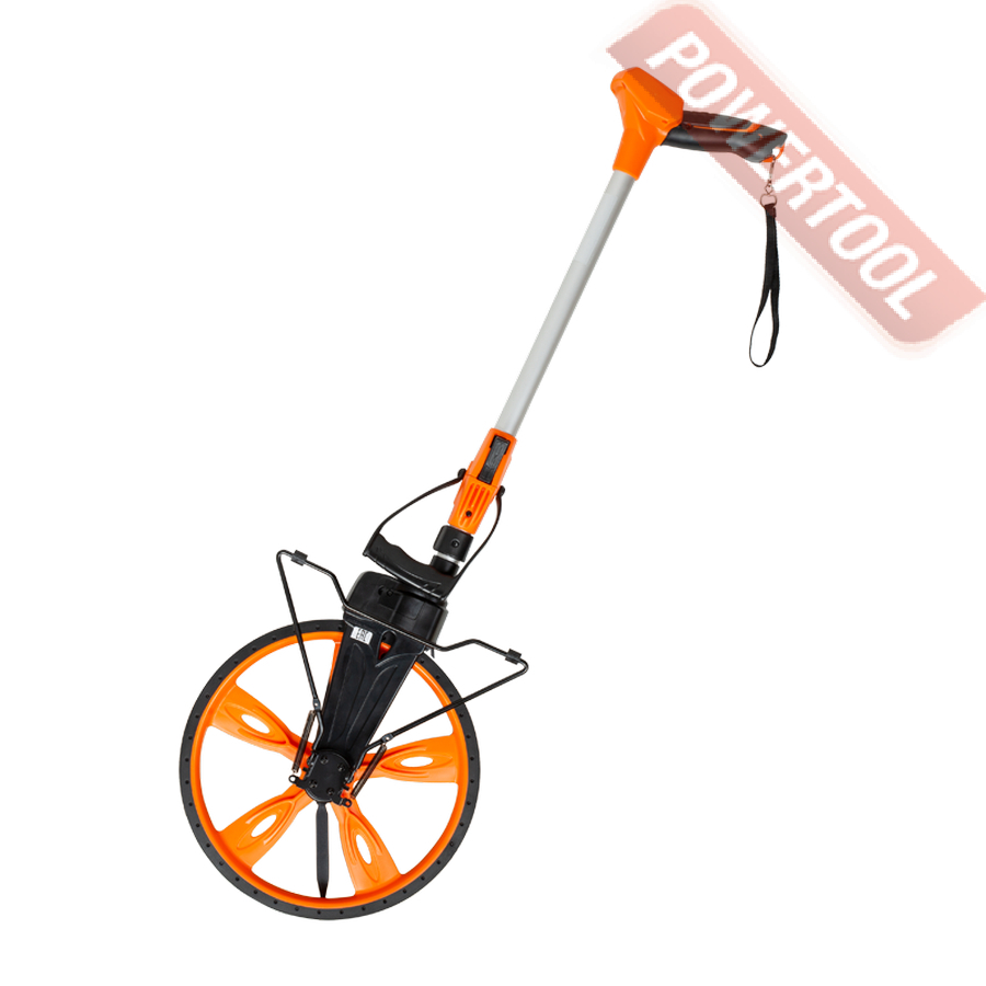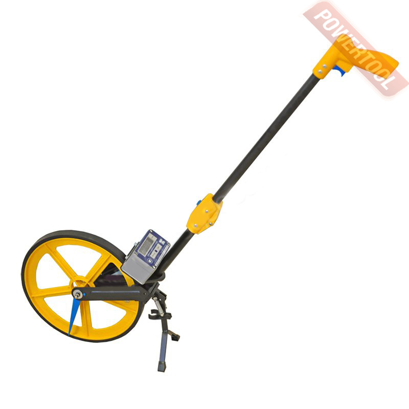 Электронное измерительное дорожное колесо из высокопрочного пластика с резиновой покрышкой, при помощи него можно измерить расстояние, вычислить площадь и выполнить другие расчеты, длина в разложенном / в сложенном виде 114/73 см, дальность измерений до 999999,9 м, точность измерений 99,9 процентов, мах скорость 13 км/ч, длина окружности колеса 100 см, диаметр колеса 31,9 см, дисплей 7 цифровой LCD с полной световой нумерацией, питание от 4 батарей тип AAA , срок службы 400 часов, диапазон рабочей температуры от минус 10 до плюс 60 градусов С, вес 1,36 кг, без подставки.