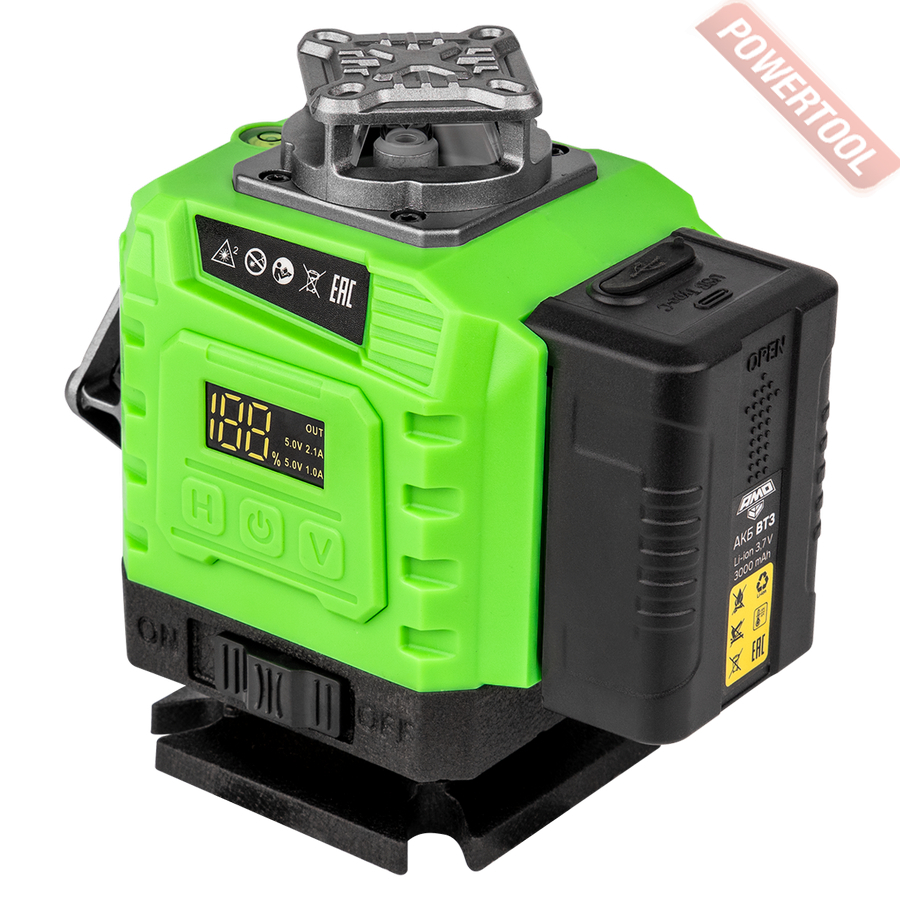 Прибор обеспечивает точность ±1 мм на 7 метров, что соответствует требованиям профессионального строительства и финишной отделки. Диапазон самовыравнивания — ±3 градуса, а при выходе за его пределы лазерная линия начинает мигать, а прибор подает звуковой сигнал, предупреждая о необходимости корректировки положения.