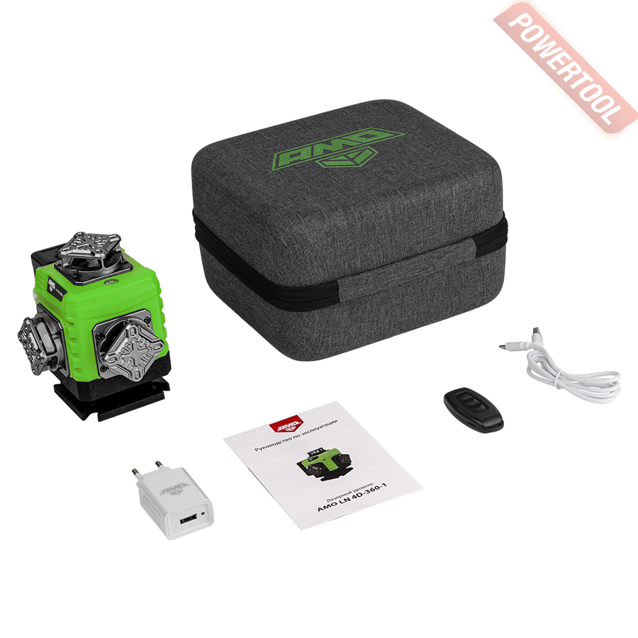 - 1. Лазерный уровень построитель плоскостей AMO LN 4D-360-1.