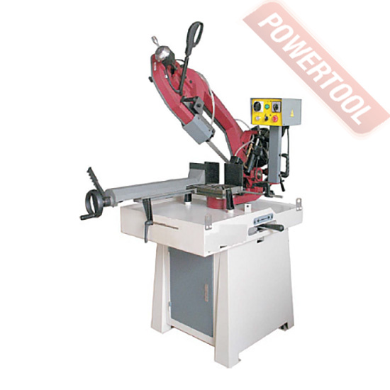 Ленточнопильный станок по металлу с ручным приводом рамы, 550 Вт, 220 В, полотно 1730х13х0,65 мм, скорость полотна 75 м/мин, сечение пропила круг/квадрат/прямоугольник при 90 градусах 130/130х130/180х100 мм, при 45 градусах 115/105х105/115х75 мм, при 60 градусах 70/60х60/70х60 мм, поворот рамы 0-60 градусов, СОЖ 15 л, ручной подъем и опускание рамы, мехнический рабочий цикл, размер ДхШхВ 1030х840х1540 мм, вес 77 кг.