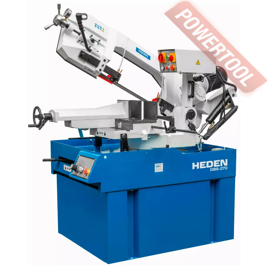 - Автоматический ленточнопильный станок. Станок оборудован высокопроизводительным промышленным гидроагрегатом. Полный цикл пиления запускается при нажатии одной кнопки - происходит зажим материала, подача заготовки в зону реза, включение вращения пилы и подачи СОЖ, распила, выключения пилы и СОЖ, подъем рамы в исходное настраиваемое положение и разжим тисков. Все это, при наличии управляемой гидравлической подачи, позволяет получить максимальную производительность, особенно при пилении больших серий и пилении труднообрабатываемых материалов сплошного сечения. При переключении в ручной режим, можно управлять всеми функциями станка по отдельности.