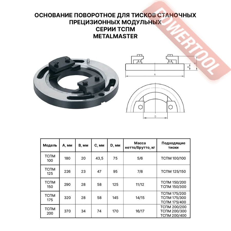 - 1. Основание поворотное для тисков METAL MASTER ТСПМ 150.