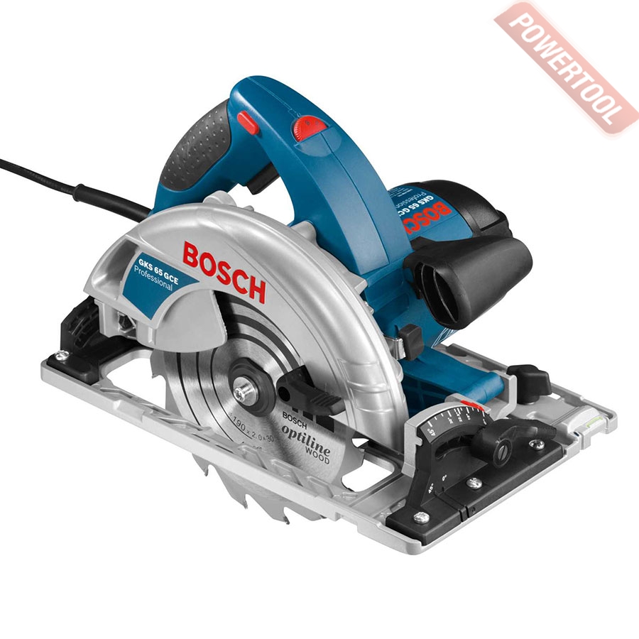 Пила циркулярная ручная BOSCH GKS 65 GCE - это профессиональный инструмент, предназначенный для распиловки любых материалов из древесины. Дисковая пила отличается точностью и чистотой распила. модель прекрасно справляется с натуральной древесиной, ДСП, ДВП, фанерой и с некоторыми видами металлов. Конечно же, такой большой спектр обрабатываемых материалов пила может резать при установке соответствующих дисков. Это устройство едва ли не первой необходимости на приусадебном участке в случае ремонта или строительства. Конструкция ручной циркулярной электрической пилы представляет собой небольшую станину, на которой установлены электропривод с валом и креплением режущего диска, ручки, кнопка пуска, различные вспомогательные устройства: направляющая линейка, устройство отвода опилок, приспособление для резки под углом и т. п.