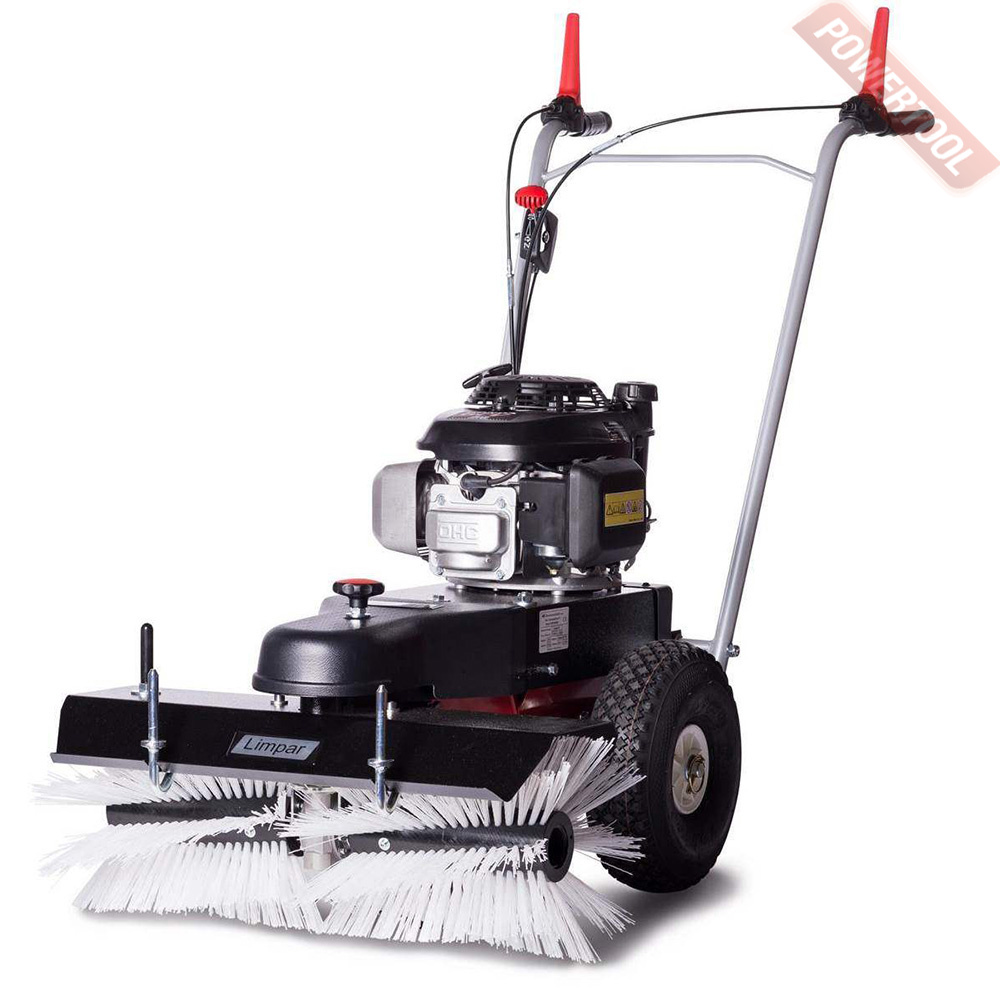 Самоходная щеточная подметальная машина, ширина щетки 80 см, диаметр 30 см, 4-х тактный двигатель Champion OHV объемом 163 куб.см мощностью 5,5 л.с., скорости вперед/назад 4/0 - от 2 до 5 км/ч, пневмоколеса 36x13 см, вес 90 кг, мусоросборник и нож-отвал.