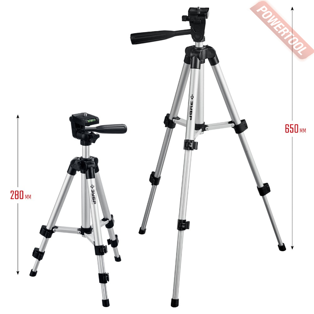 Штатив элевационный, предназначен для установки легких лазерных уровней и фото/видео аппаратуры, материал алюминиевый сплав, мах высота 65 см, min высота 28 см, становый винт 1/4 дюйма, max нагрузка 1 кг, элевационный механизм с фиксатором, поворотная голова с поворотом на 360 и наклоном на 90 градусов, пузырьковый уровень, фиксация телескопических ножек на клипсах, размеры 210х160х60 мм, вес 0,28 кг, сумка-чехол.