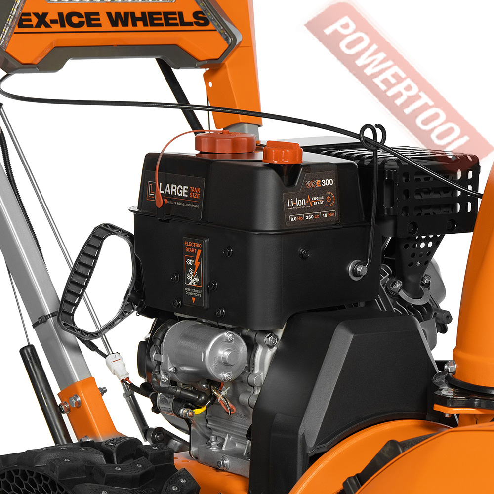 • Уникальные колеса EX ICE WHEELS. Широкие безвоздушные колеса созданы специально для снегоуборщиков. Колеса EX ICE обладают лучшим сцеплением с поверхностью среди всех зимних шин. Лучшая проходимость и маневренность в классе снегоуборщиков.