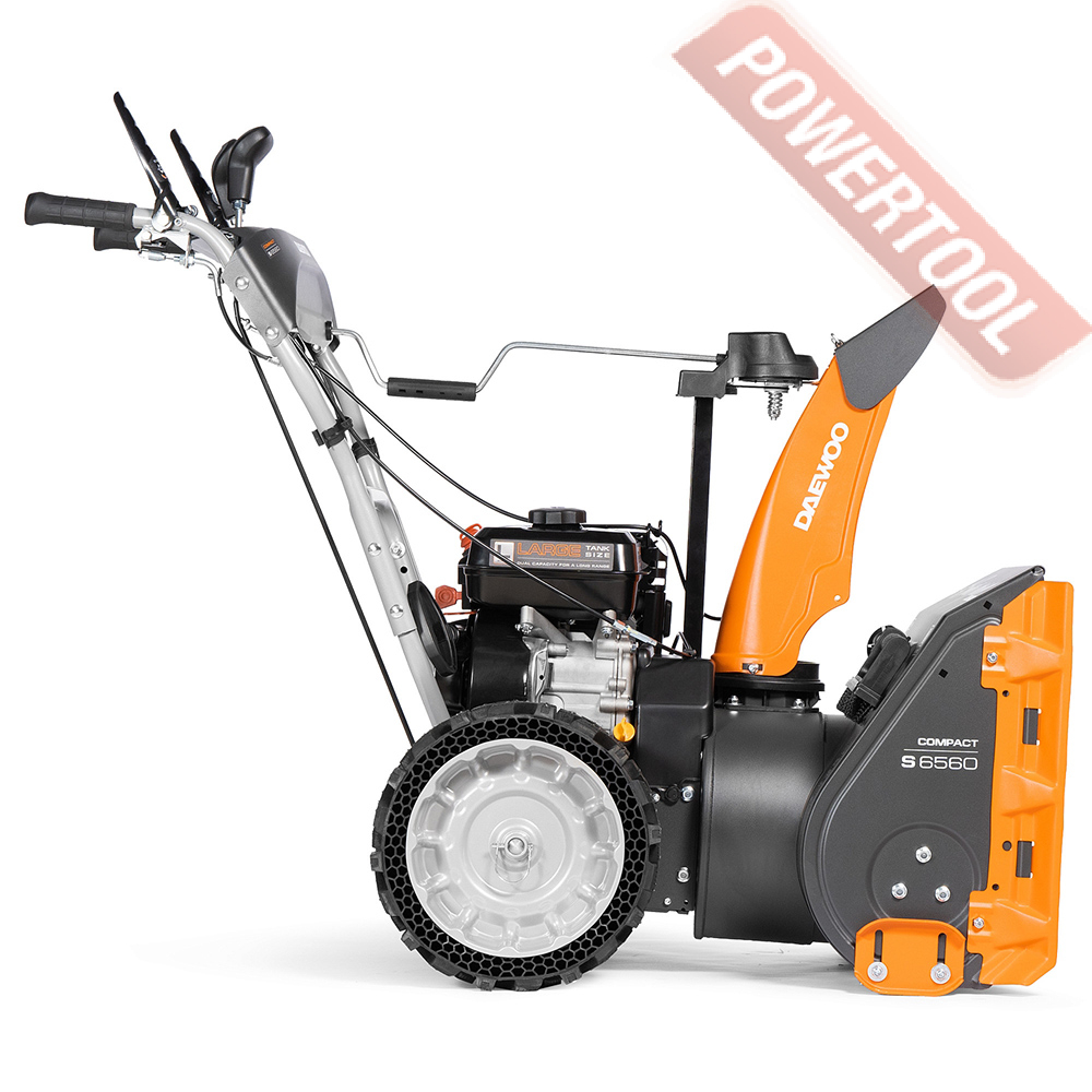 Снегоуборщик колесный самоходный DAEWOO S 6560 предназначен для расчистки как свежевыпавшего, так и уже слежавшегося снега. Машина оборудована мощным 4-тактным двигателем, ширина обработки за один проход позволяет эффективно и качественно расчищать от выпавшего снега небольшие дорожки или территорию возле загородного дома. Снегоотбрасыватель имеет двухступенчатую систему выброса снега: снег, попавший в ковш измельчается и подаётся зубчатым шнеком на крыльчатку с лопастями, которые вращаясь выбрасывают измельченный снег через патрубок в заданном оператором направлении. Наличие двух ступеней, зубчатого металлического шнека и высокоскоростной крыльчатки,позволяет разрыхлять даже слежавшийся снег.