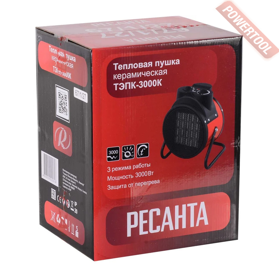 - 1. Тепловая пушка электрическая РЕСАНТА ТЭПК-3000К.