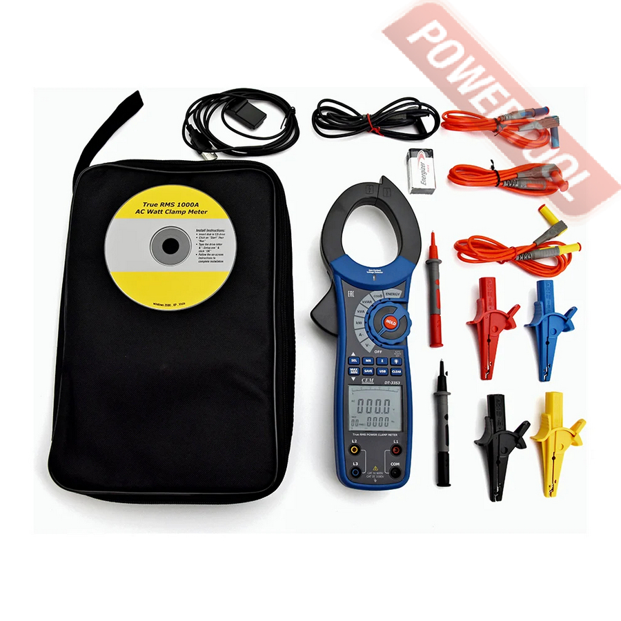 • 1. Токовые клещи с ваттметром CEM DT-3353.