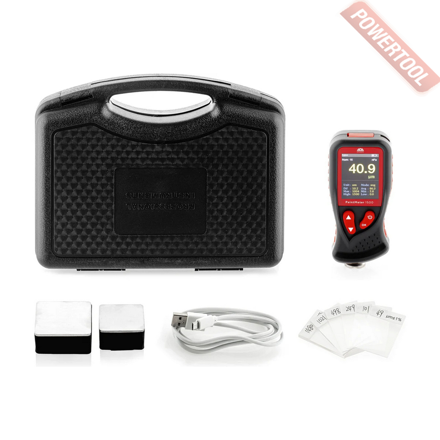 Толщиномер ADA PaintMeter 1500 - профессиональная модель с русифицированным меню. Предназначен для работы в лабораториях, мастерских, в химической, автомобильной, судостроительной и авиационной промышленностях. Универсальный датчик толщиномера работает по двум принципам: магнитная индукция и вихревой поток.