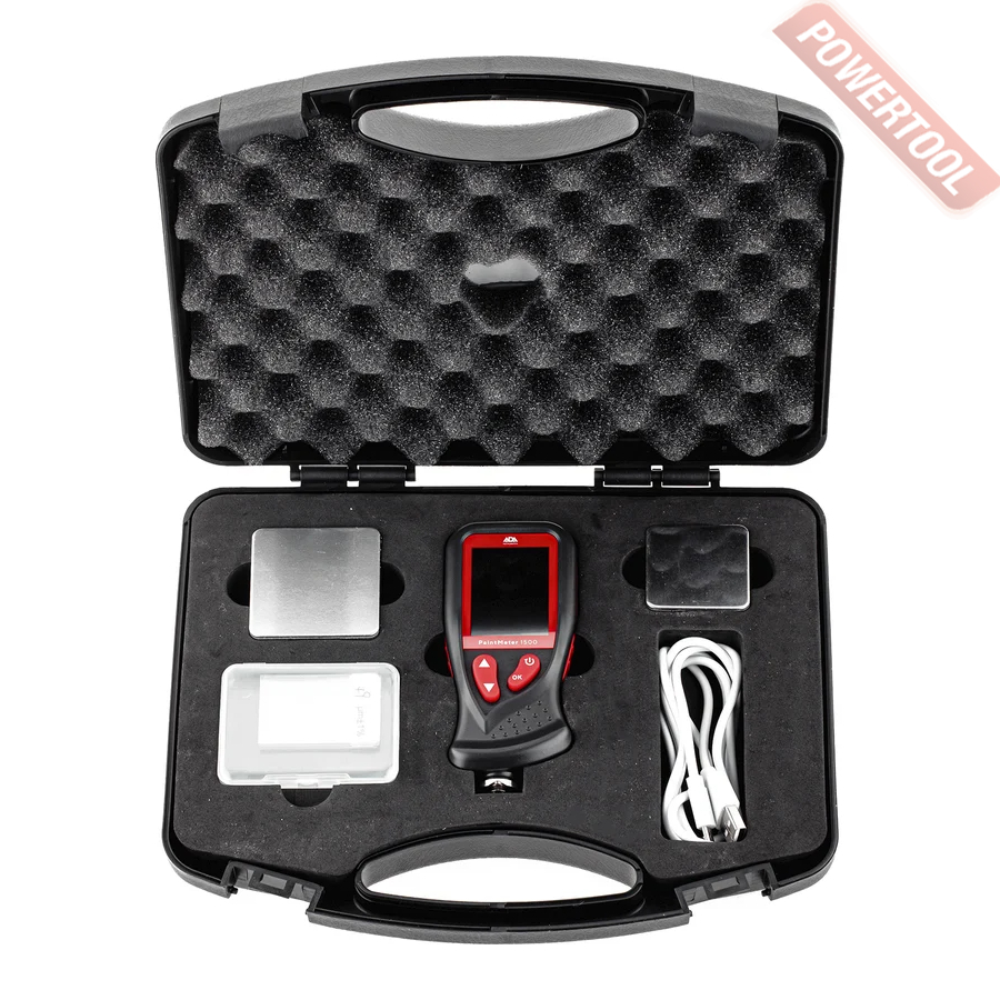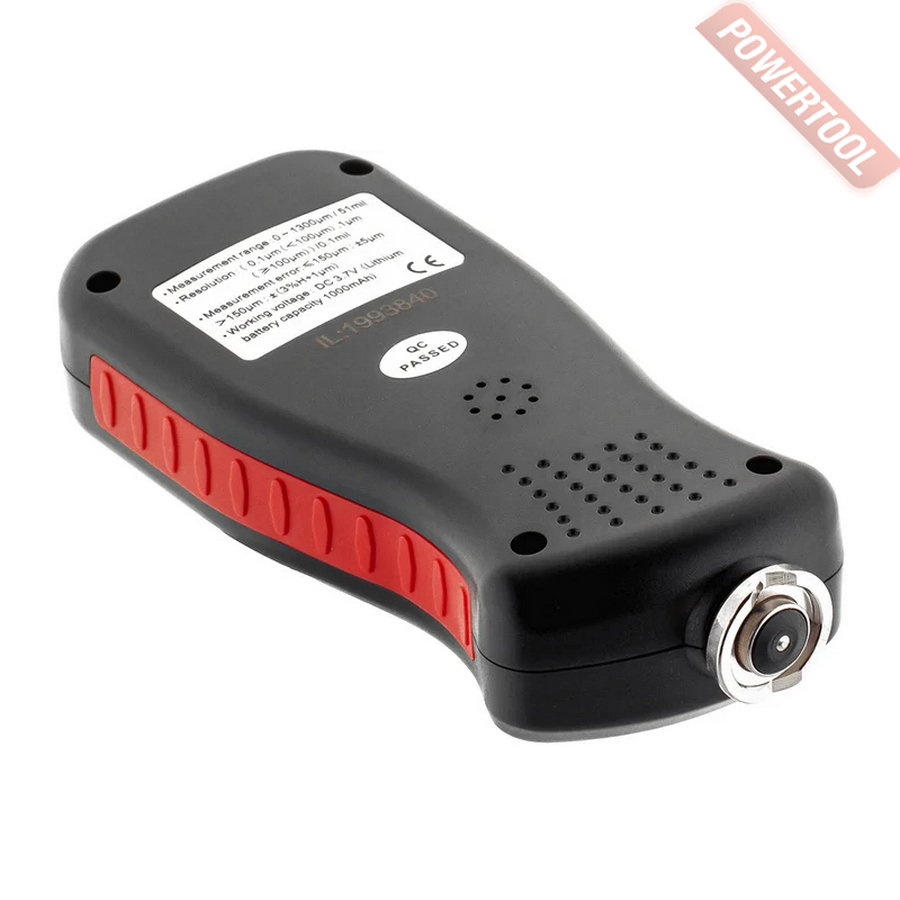Толщиномер, магнитный/вихретоковый, диапазон измерений 0-1500 мкм, min радиус выпуклой поверхности 2 мм, min радиус вогнутой поверхности 11 мм, min диаметр поверхности 12/50 мм, min толщина измерения 0,5 мм, функция Min/Max, функция AVG, память на 2500 значений, ЖК-дисплей, USB-интерфейс, питание от литий-ионного аккумулятора 3,7В 1000 мАч, размер ДхШхВ 52,9х26х117 мм, вес 0,102 кг, кабель USB, набор пластин для калибровки, шнурок на запястье, кейс.