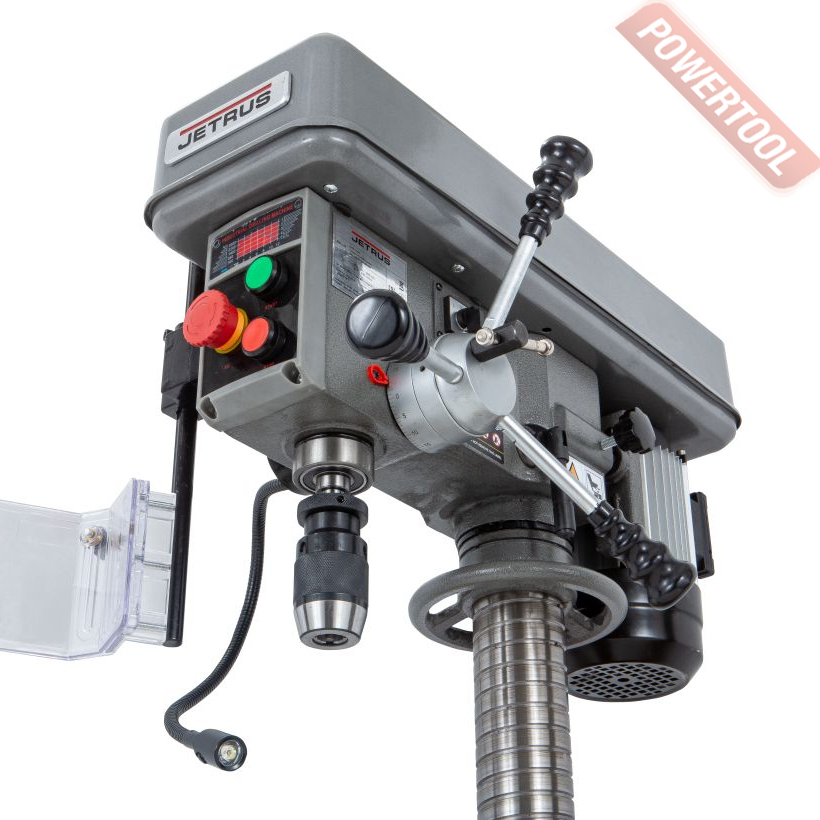Вертикально-сверлильный станок JET JDP-14T 380В промышленной серии с подключением к сети в 400 вольт. Благодаря высокому качеству исполнения деталей и механизмов, станок отличается хорошими показателями точности и долговечности и может применятся для серийного изготовления деталей.