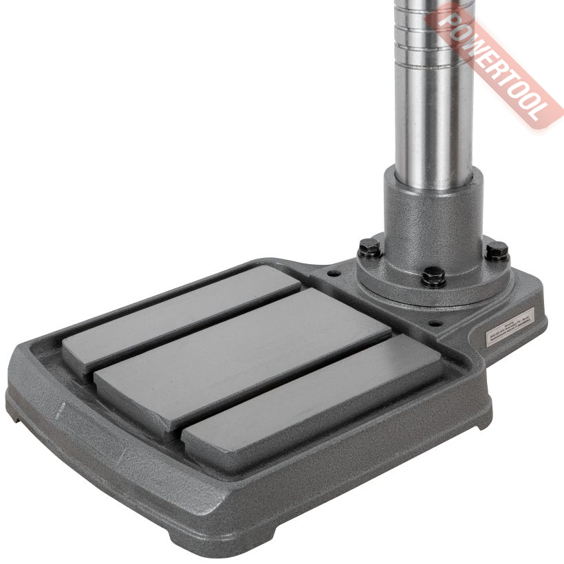 Станок имеет устойчивое чугунное основание размером 490x310 мм, с рабочей поверхностью стола 238х240 мм, на которой предусмотрены 2-Т образных паза с шириной 14 мм, для установки тисков или других зажимных приспособлениями. Расстояние между пазами 120 мм. На основание установлена колонна диаметром 70мм с винтовой канавкой для возможности перемещения сверлильной головы по вертикали. Максимальное расстояние между шпинделем и столом-основанием, составляет 540 мм.