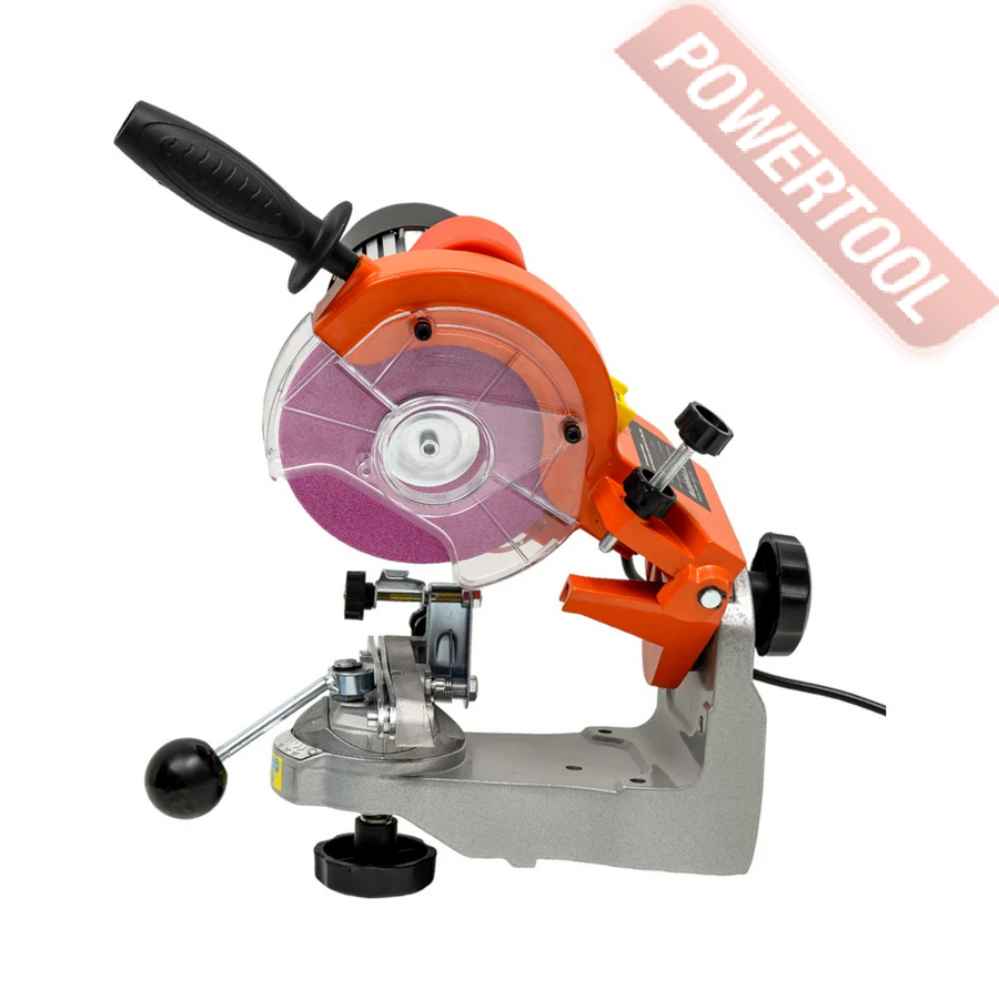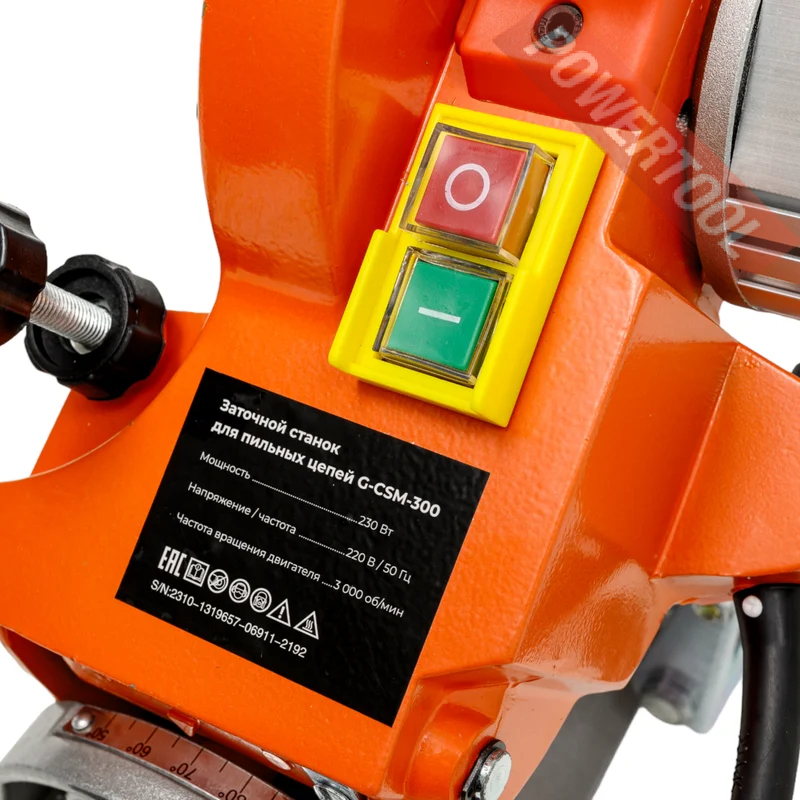 Заточной станок для цепей бензопил, мощность 230 Вт, напряжение 220 В, шлифкруг 145х22,2х3,2/4,8 мм, число оборотов 3000 об/мин, защитный экран, подсветка рабочей зоны, регулировка угла заточки, габариты ДхШхВ 230х340х320 мм, вес 6,1 кг, заточный диск 145х22,2х3,2 мм, заточный диск 145х22,2х4,8 мм.